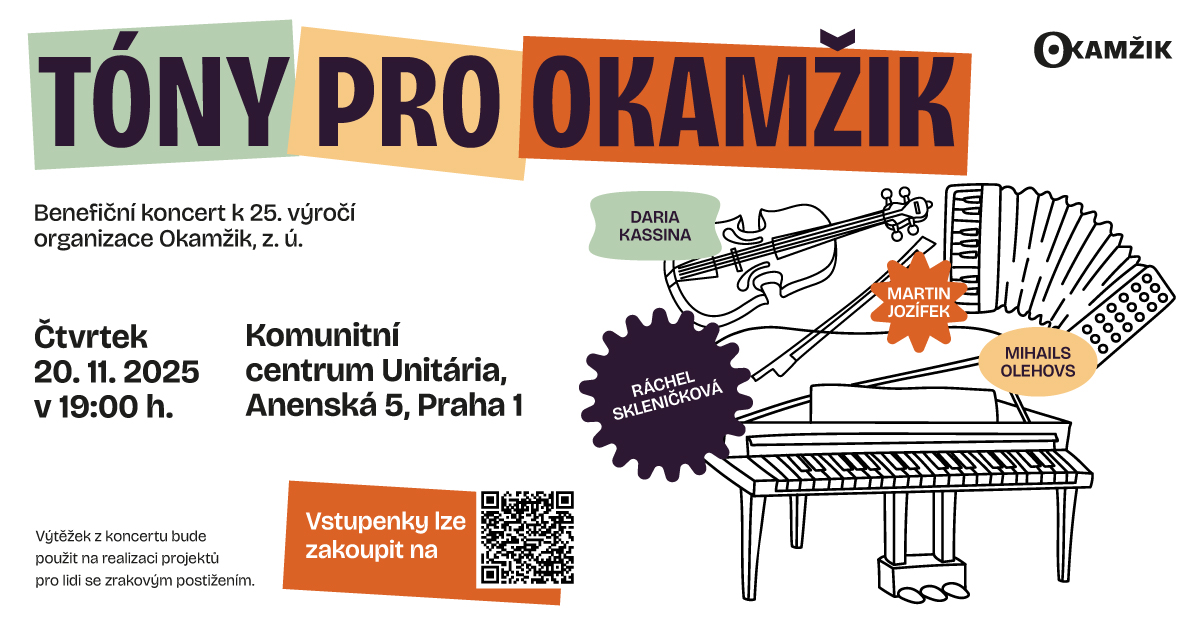 Srdečně zveme všechny příznivce hudby i dobrých skutků, aby přišli podpořit tyto talentované mladé umělce a společně s námi oslavili 25 let činnosti Okamžiku.