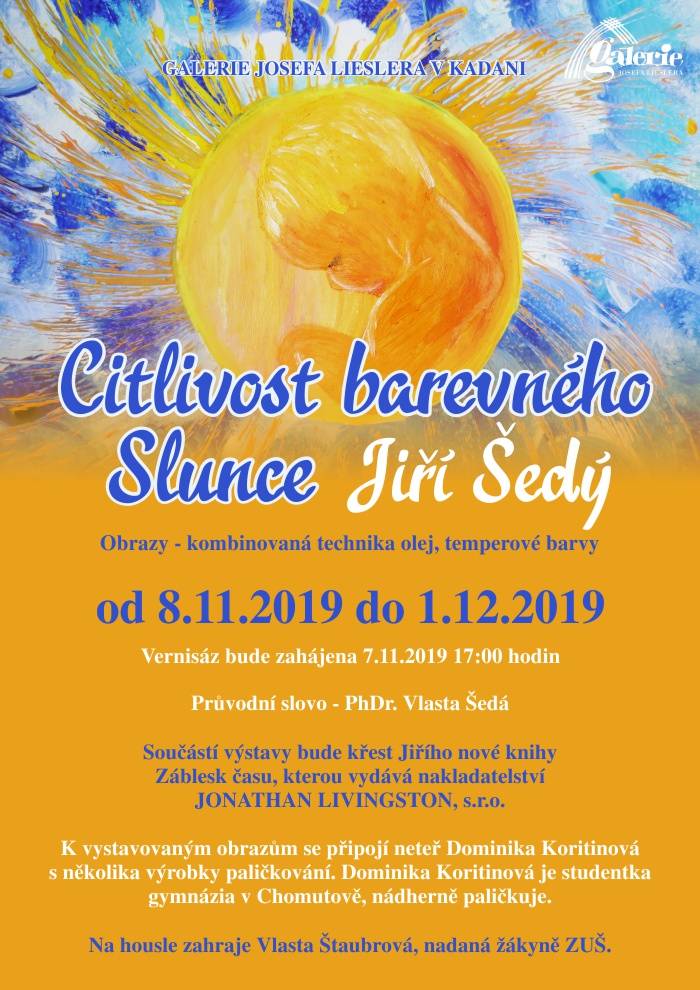 Vernisáž výstavy Jiřího Šedého spojená se křtem jeho nové knihy Záblesk času proběhne v Galerii Josefa Lieslera v Kadani 7. listopadu 2019.