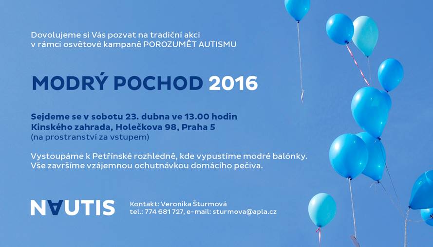 Rádi se procházíte a obdivujete krásy Prahy? A co takhle to spojit s osvětovou kampaní Porozumět autismu 2016? Přijměte od nás pozvání na každoroční Modrý pochod.