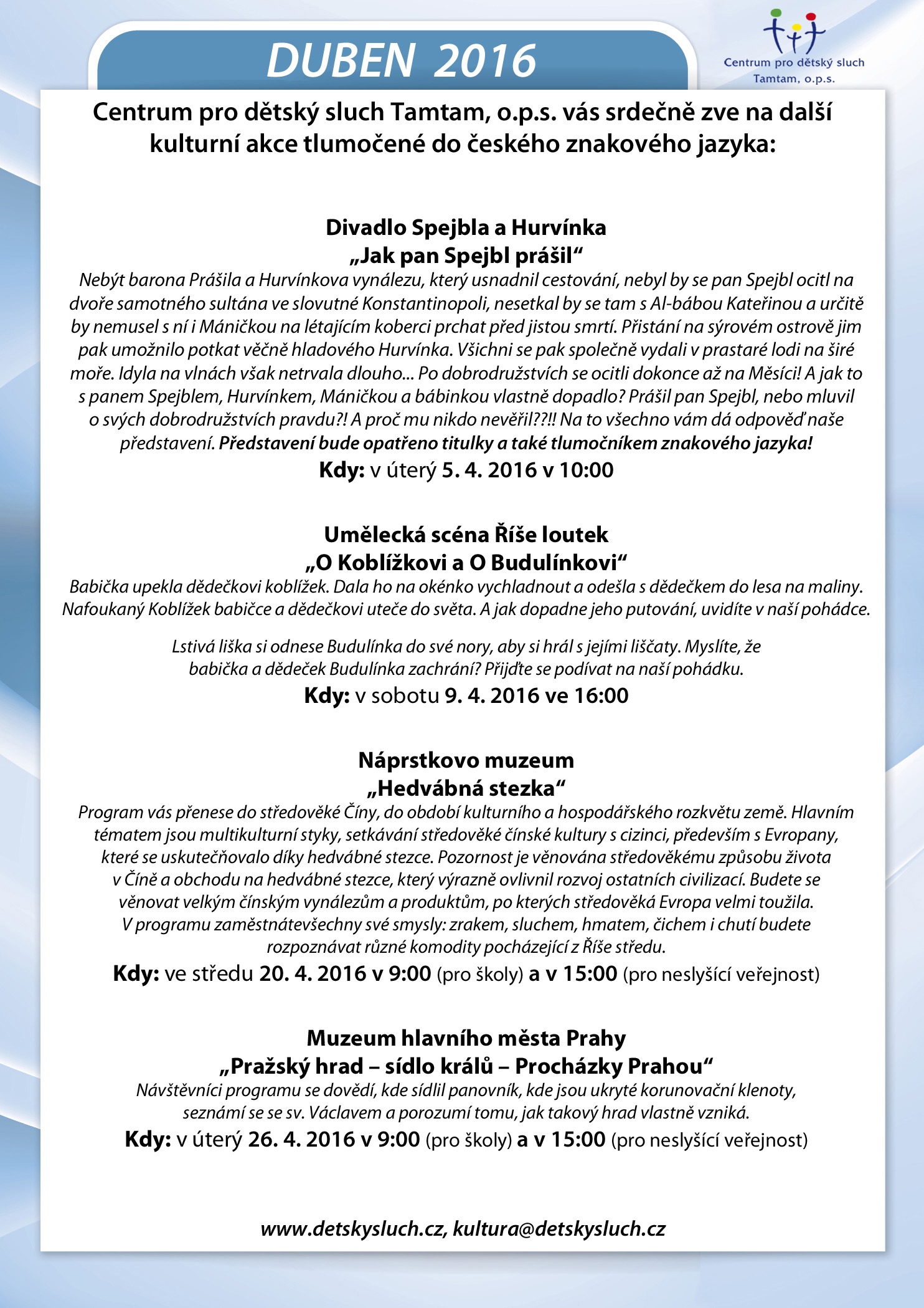 Na dubnové kulturní akce tlumočené do českého znakového jazyka.